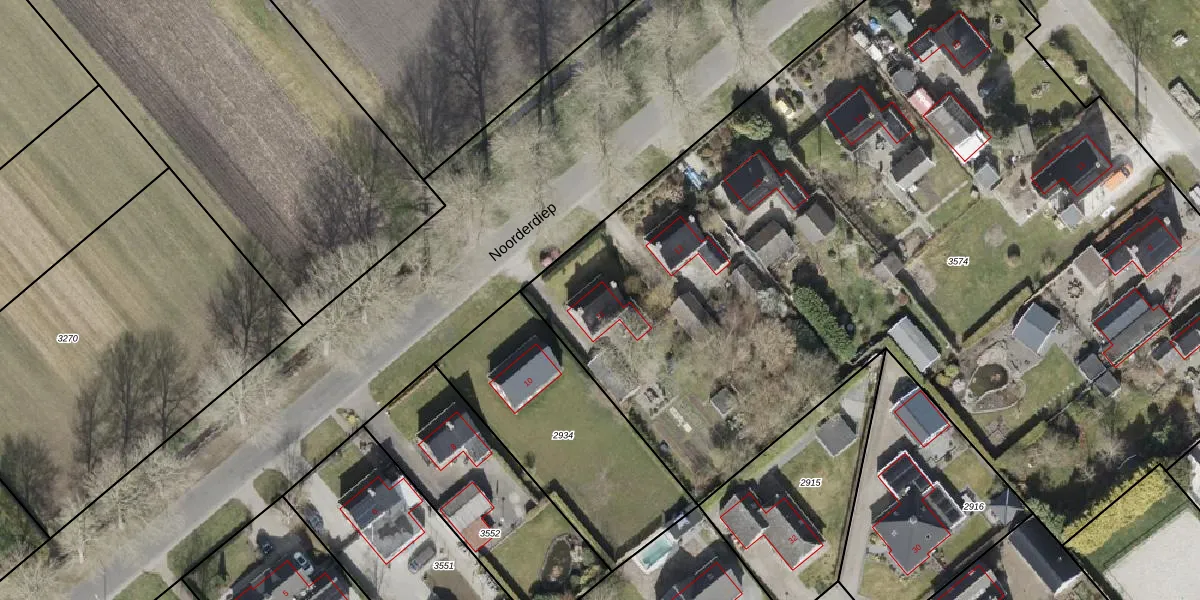 Het perceel waarop Noorderdiep 11 staat heeft een oppervlakte van 6798 m². Dit is een zeer groot perceel. De perceeloppervlakte wordt geregistreerd door het Kadaster. Gedetailleerde informatie over de maten van dit perceel kunt u vinden in het rapport Kadastrale kaart met maatvoering van Noorderdiep 11.