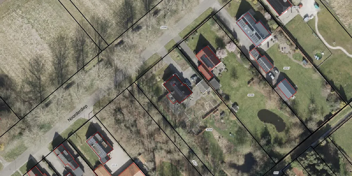 Het perceel waarop Noorderdiep 58 staat heeft een oppervlakte van 2765 m². Dit is een zeer groot perceel. De perceeloppervlakte wordt geregistreerd door het Kadaster. Gedetailleerde informatie over de maten van dit perceel kunt u vinden in het rapport Kadastrale kaart met maatvoering van Noorderdiep 58.