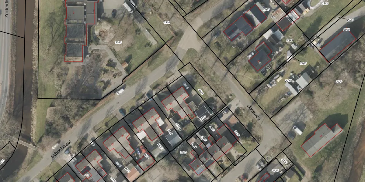 Schoolstraat 24 is gelegen op kadastraal perceel ODN00M2832. Deze kadastrale aanduiding is uniek en wordt gebruikt door het Kadaster om eigendomsrechten en andere zakelijke rechten vast te leggen. Het perceel maakt onderdeel uit van de kadastrale gemeente Odoorn.