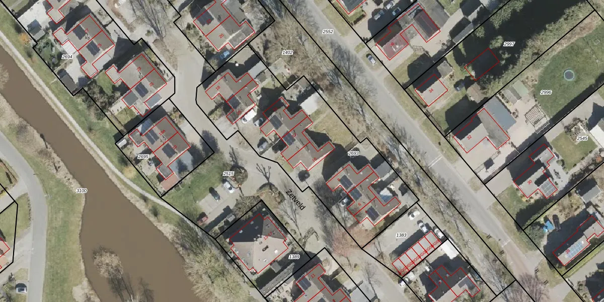 Het perceel waarop Zetveld 10 staat heeft een oppervlakte van 1955 m². Dit is een zeer groot perceel. De perceeloppervlakte wordt geregistreerd door het Kadaster. Gedetailleerde informatie over de maten van dit perceel kunt u vinden in het rapport Kadastrale kaart met maatvoering van Zetveld 10.