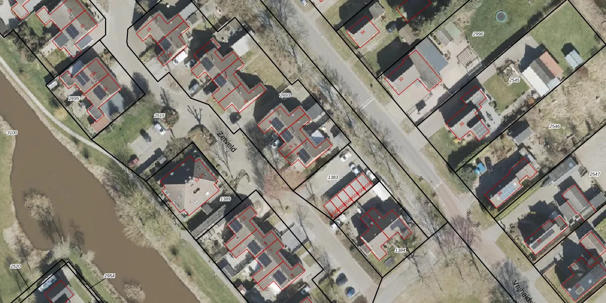 Het perceel waarop Zetveld 4 staat heeft een oppervlakte van 1955 m². Dit is een zeer groot perceel. De perceeloppervlakte wordt geregistreerd door het Kadaster. Gedetailleerde informatie over de maten van dit perceel kunt u vinden in het rapport Kadastrale kaart met maatvoering van Zetveld 4.