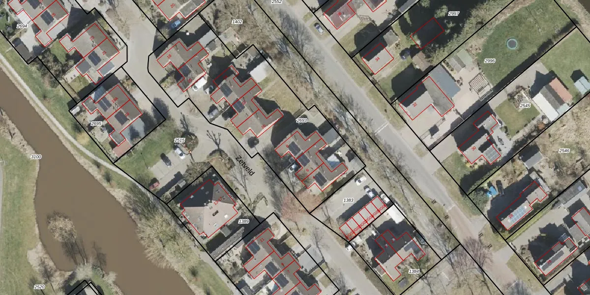 Het perceel waarop Zetveld 8 staat heeft een oppervlakte van 1955 m². Dit is een zeer groot perceel. De perceeloppervlakte wordt geregistreerd door het Kadaster. Gedetailleerde informatie over de maten van dit perceel kunt u vinden in het rapport Kadastrale kaart met maatvoering van Zetveld 8.