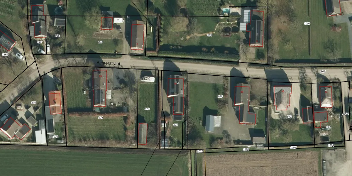 Het perceel waarop Achterstraat 36 staat heeft een oppervlakte van 526 m². Dit is een groot perceel. De perceeloppervlakte wordt geregistreerd door het Kadaster. Gedetailleerde informatie over de maten van dit perceel kunt u vinden in het rapport Kadastrale kaart met maatvoering van Achterstraat 36.