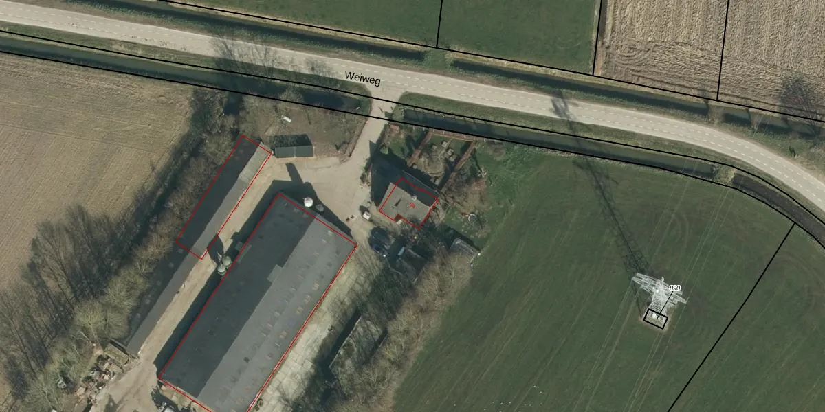 Het perceel waarop Weiweg 6-a staat heeft een oppervlakte van 8,1 ha. Dit is een zeer groot perceel. De perceeloppervlakte wordt geregistreerd door het Kadaster. Gedetailleerde informatie over de maten van dit perceel kunt u vinden in het rapport Kadastrale kaart met maatvoering van Weiweg 6-a.
