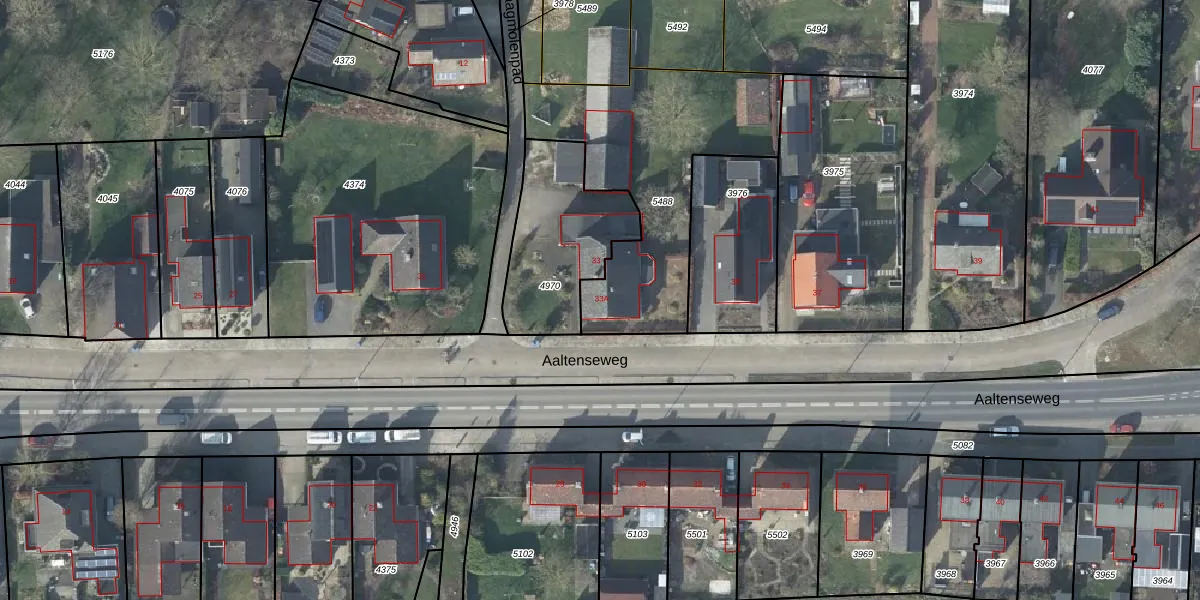 Aaltenseweg 33-A is gelegen op kadastraal perceel VSV00D5488. Deze kadastrale aanduiding is uniek en wordt gebruikt door het Kadaster om eigendomsrechten en andere zakelijke rechten vast te leggen. Het perceel maakt onderdeel uit van de kadastrale gemeente Varsseveld.