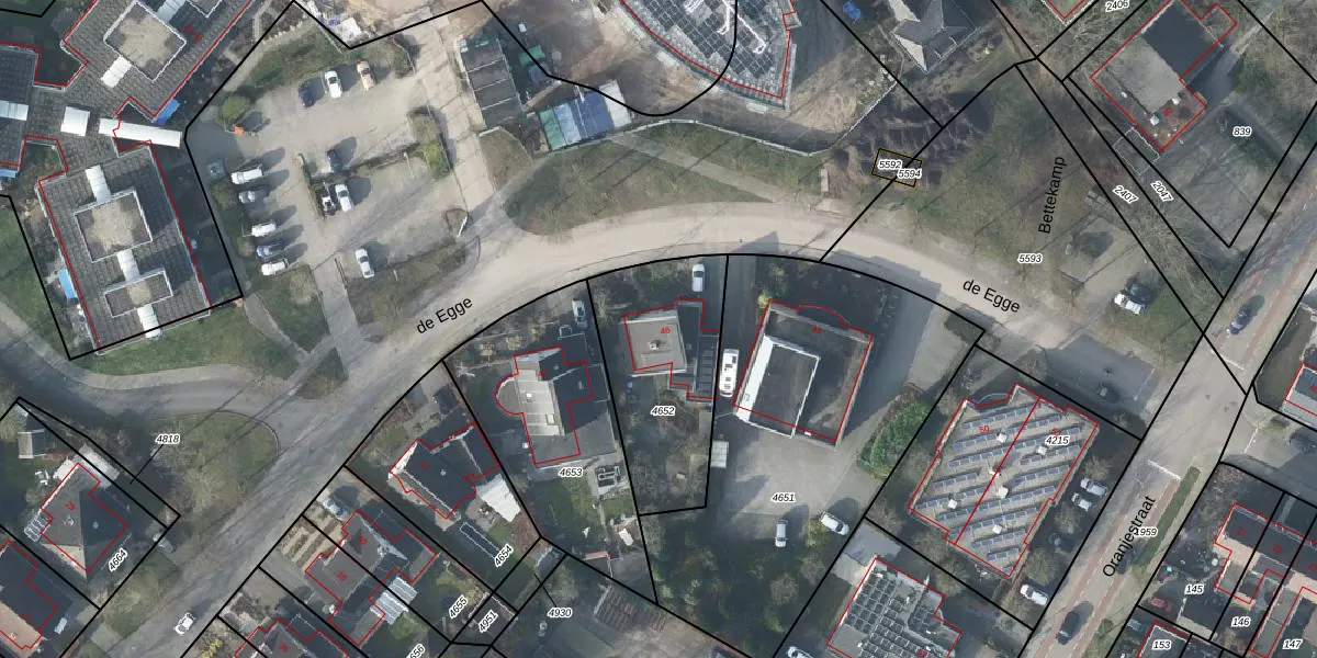 Het perceel waarop de Egge 46 staat heeft een oppervlakte van 605 m². Dit is een groot perceel. De perceeloppervlakte wordt geregistreerd door het Kadaster. Gedetailleerde informatie over de maten van dit perceel kunt u vinden in het rapport Kadastrale kaart met maatvoering van de Egge 46.
