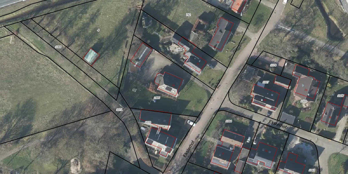 Het perceel waarop Eksterhof 13 staat heeft een oppervlakte van 1475 m². Dit is een zeer groot perceel. De perceeloppervlakte wordt geregistreerd door het Kadaster. Gedetailleerde informatie over de maten van dit perceel kunt u vinden in het rapport Kadastrale kaart met maatvoering van Eksterhof 13.