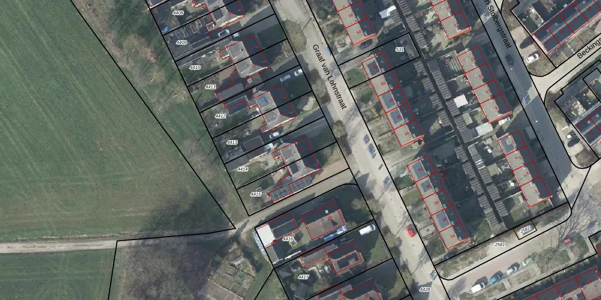 Gebruik de zoekbalk of klik op een perceel voor informatie over de adressen binnen dit perceel.