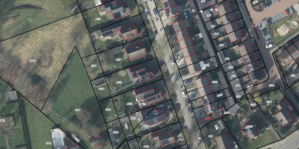 Gebruik de zoekbalk of klik op een perceel voor informatie over de adressen binnen dit perceel.