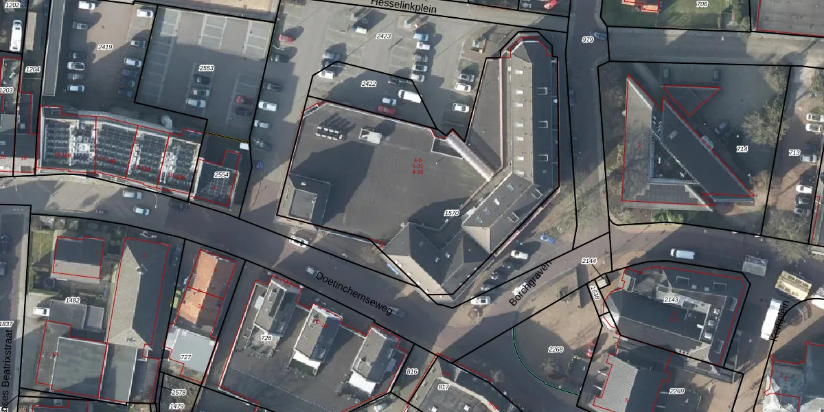 Het adres is gelegen op perceel 1570 in de sectie I en de kadastrale gemeente Varsseveld. De kadastrale aanduiding is aldus VSV00-I-1570. Het perceel is 2420 m² groot. Dat is kleiner dan de gemiddelde perceeloppervlakte in Varsseveld, dat op 5723,8 m² ligt. De grootste perceeloppervlakte in de kadastrale gemeente is 29,0 ha. De kleinste oppervlakte bedraagt 0 m². Er zijn 22 adressen aanwezig op het perceel. In de Basisregistratie Kadaster (BRK) werden de grenzen van het perceel geregistreerd op 22-07-2020.