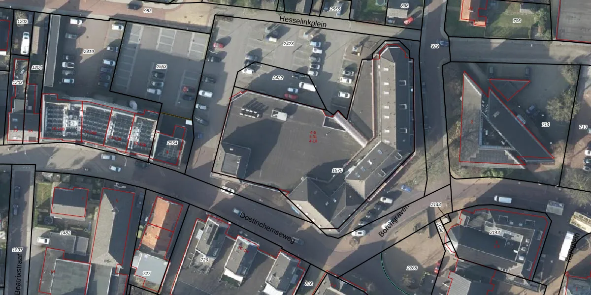 Het adres is gelegen op perceel 1570 in de sectie I en de kadastrale gemeente Varsseveld. De kadastrale aanduiding is aldus VSV00-I-1570. Het perceel is kleiner dan gemiddeld in Varsseveld. Het perceel is 2420 m² groot, terwijl het gemiddelde ligt op 5715,81 m². Het grootste perceel in de kadastrale gemeente is 29,0 ha. Het kleinste perceel heeft een oppervlakte van 0 m². Op het perceel liggen in totaal 22 adressen. De laatste wijziging in het de Basisregistratie Kadaster (BRK) was op 22-07-2020.