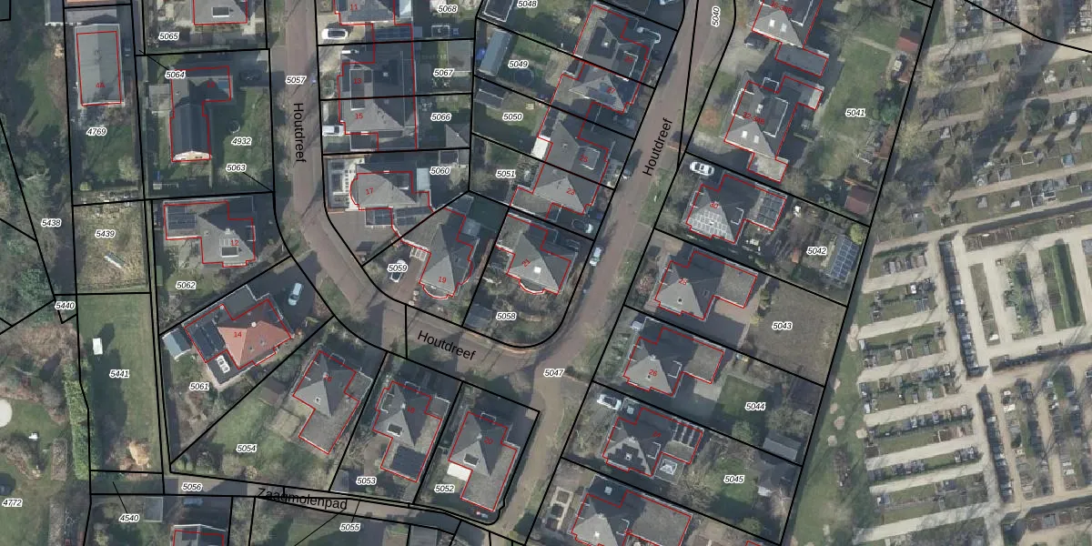 Houtdreef 21 is gelegen op kadastraal perceel VSV00D5058. Deze kadastrale aanduiding is uniek en wordt gebruikt door het Kadaster om eigendomsrechten en andere zakelijke rechten vast te leggen. Het perceel maakt onderdeel uit van de kadastrale gemeente Varsseveld.