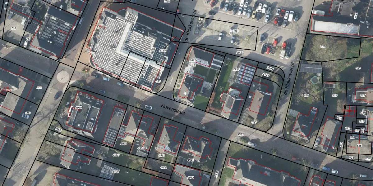 Het perceel waarop Hovenstraat 7 staat heeft een oppervlakte van 629 m². Dit is een groot perceel. De perceeloppervlakte wordt geregistreerd door het Kadaster. Gedetailleerde informatie over de maten van dit perceel kunt u vinden in het rapport Kadastrale kaart met maatvoering van Hovenstraat 7.
