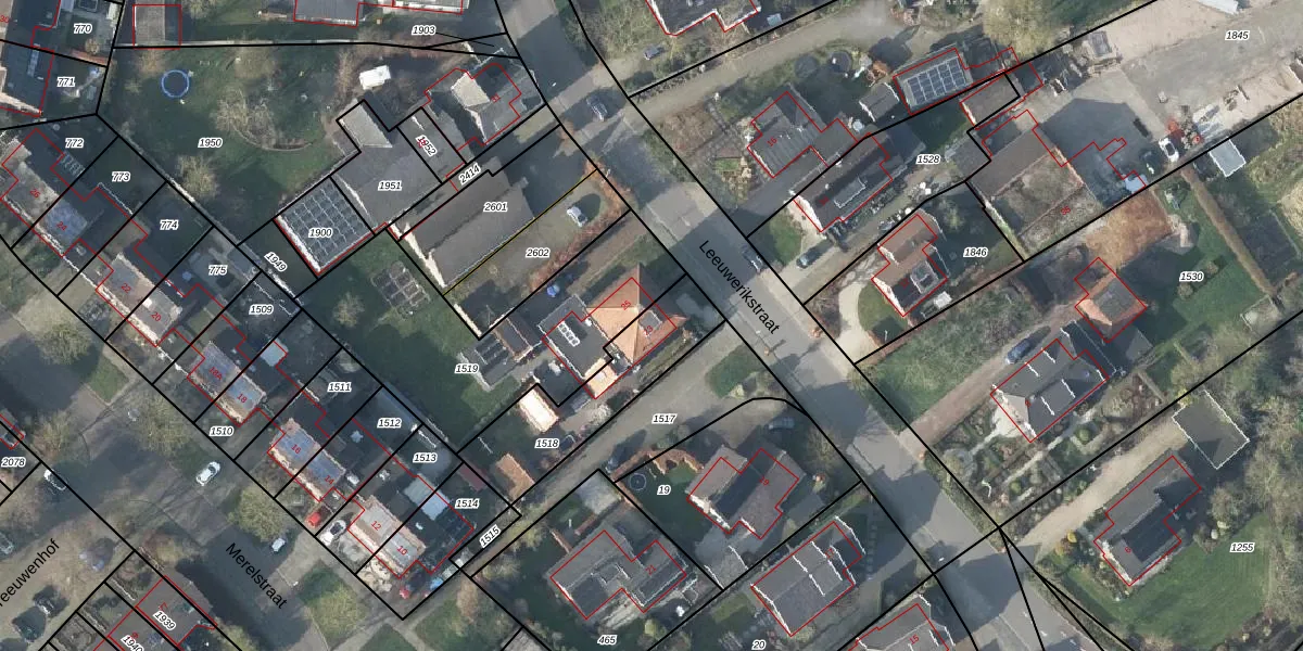 Het perceel waarop Leeuwerikstraat 23 staat heeft een oppervlakte van 427 m². Dit is een groot perceel. De perceeloppervlakte wordt geregistreerd door het Kadaster. Gedetailleerde informatie over de maten van dit perceel kunt u vinden in het rapport Kadastrale kaart met maatvoering van Leeuwerikstraat 23.