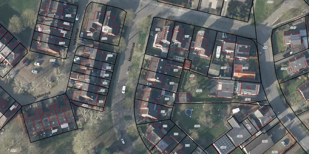 Het perceel waarop Merelstraat 32 staat heeft een oppervlakte van 261 m². Dit is een middelgroot perceel. De perceeloppervlakte wordt geregistreerd door het Kadaster. Gedetailleerde informatie over de maten van dit perceel kunt u vinden in het rapport Kadastrale kaart met maatvoering van Merelstraat 32.