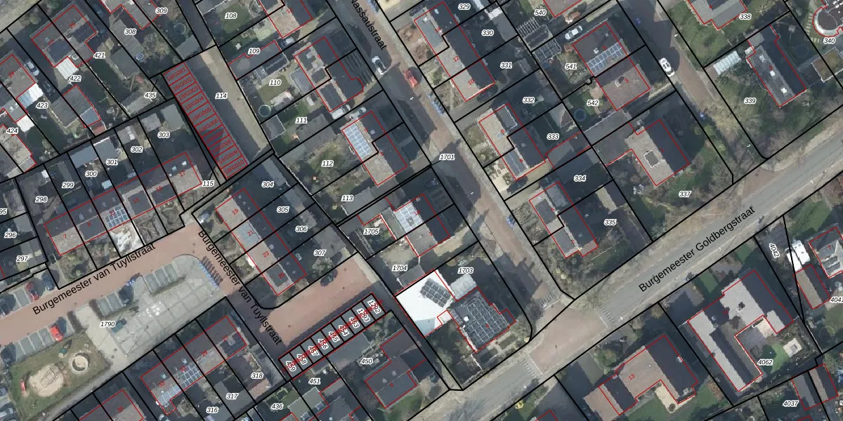 Gebruik de zoekbalk of klik op een perceel voor informatie over de adressen binnen dit perceel.