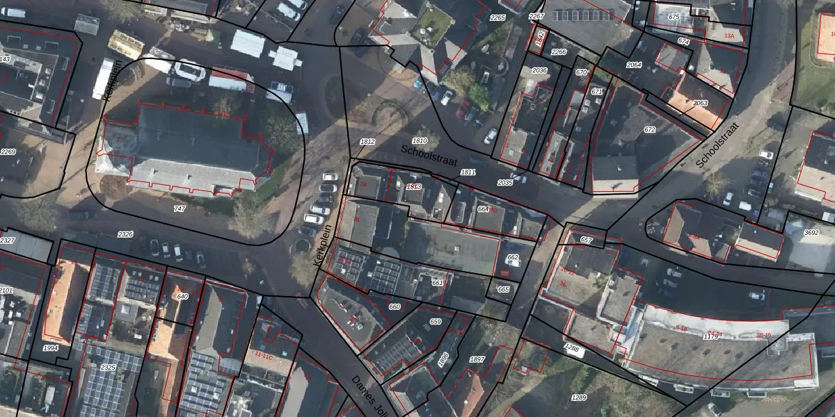 Schoolstraat 2-B is gelegen op kadastraal perceel VSV00I1813. Deze kadastrale aanduiding is uniek en wordt gebruikt door het Kadaster om eigendomsrechten en andere zakelijke rechten vast te leggen. Het perceel maakt onderdeel uit van de kadastrale gemeente Varsseveld.