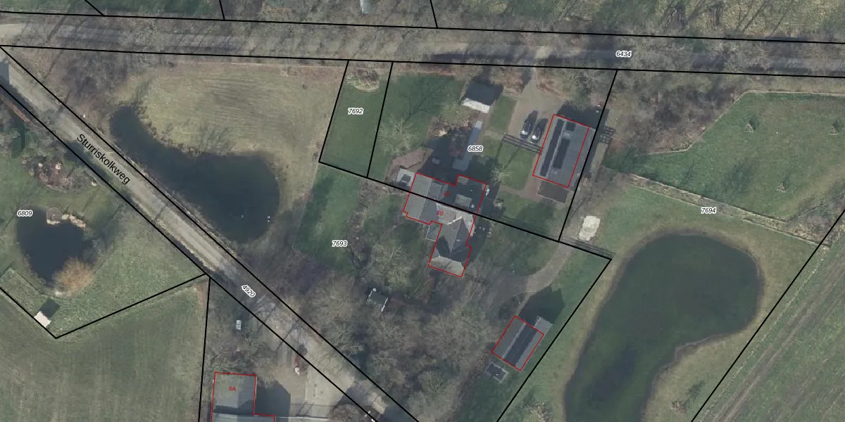 Het perceel waarop Sturriskolkweg 10 staat heeft een oppervlakte van 5345 m². Dit is een zeer groot perceel. De perceeloppervlakte wordt geregistreerd door het Kadaster. Gedetailleerde informatie over de maten van dit perceel kunt u vinden in het rapport Kadastrale kaart met maatvoering van Sturriskolkweg 10.