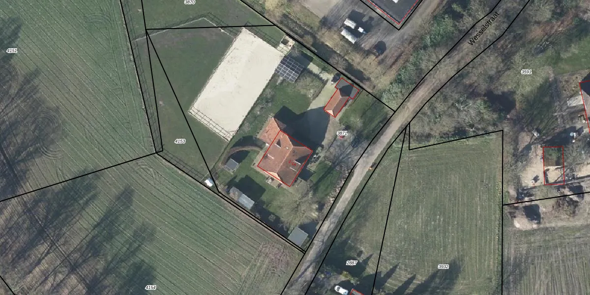 Het perceel waarop Wesselstraat 1 staat heeft een oppervlakte van 3610 m². Dit is een zeer groot perceel. De perceeloppervlakte wordt geregistreerd door het Kadaster. Gedetailleerde informatie over de maten van dit perceel kunt u vinden in het rapport Kadastrale kaart met maatvoering van Wesselstraat 1.