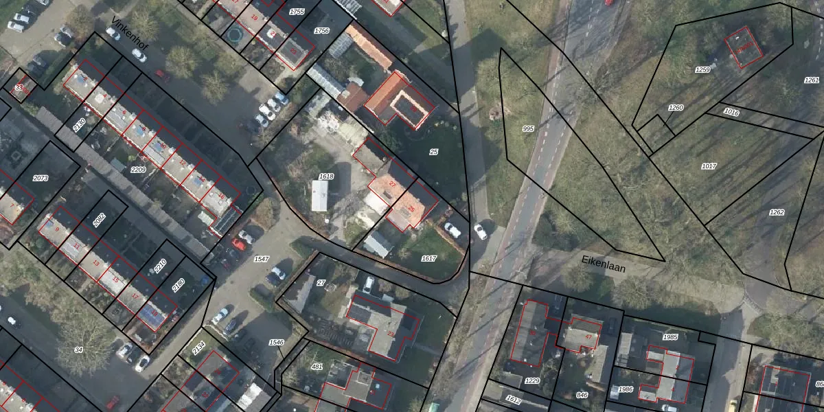 Gebruik de zoekbalk of klik op een perceel voor informatie over de adressen binnen dit perceel.