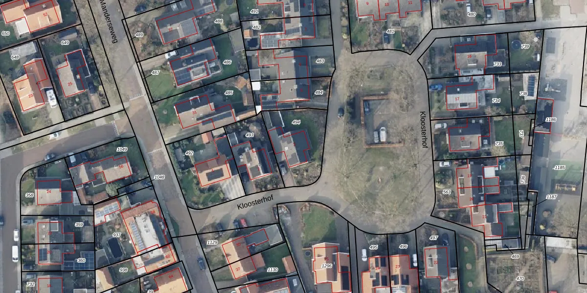 Het perceel waarop Kloosterhof 3 staat heeft een oppervlakte van 442 m². Dit is een groot perceel. De perceeloppervlakte wordt geregistreerd door het Kadaster. Gedetailleerde informatie over de maten van dit perceel kunt u vinden in het rapport Kadastrale kaart met maatvoering van Kloosterhof 3.