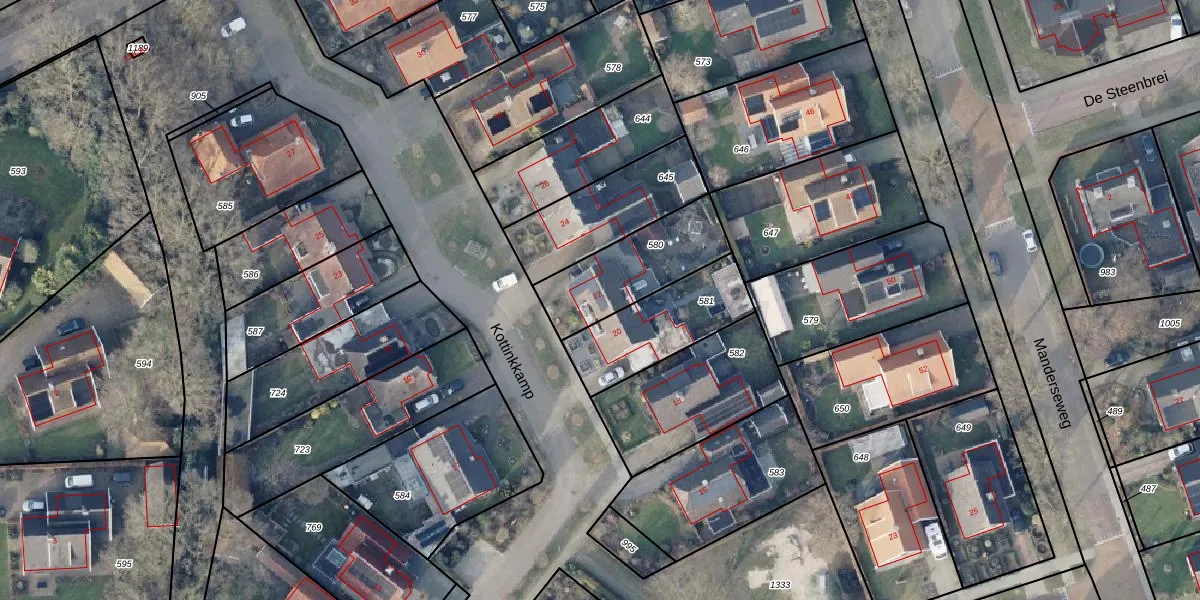 Het perceel waarop Kottinkkamp 22 staat heeft een oppervlakte van 345 m². Dit is een groot perceel. De perceeloppervlakte wordt geregistreerd door het Kadaster. Gedetailleerde informatie over de maten van dit perceel kunt u vinden in het rapport Kadastrale kaart met maatvoering van Kottinkkamp 22.