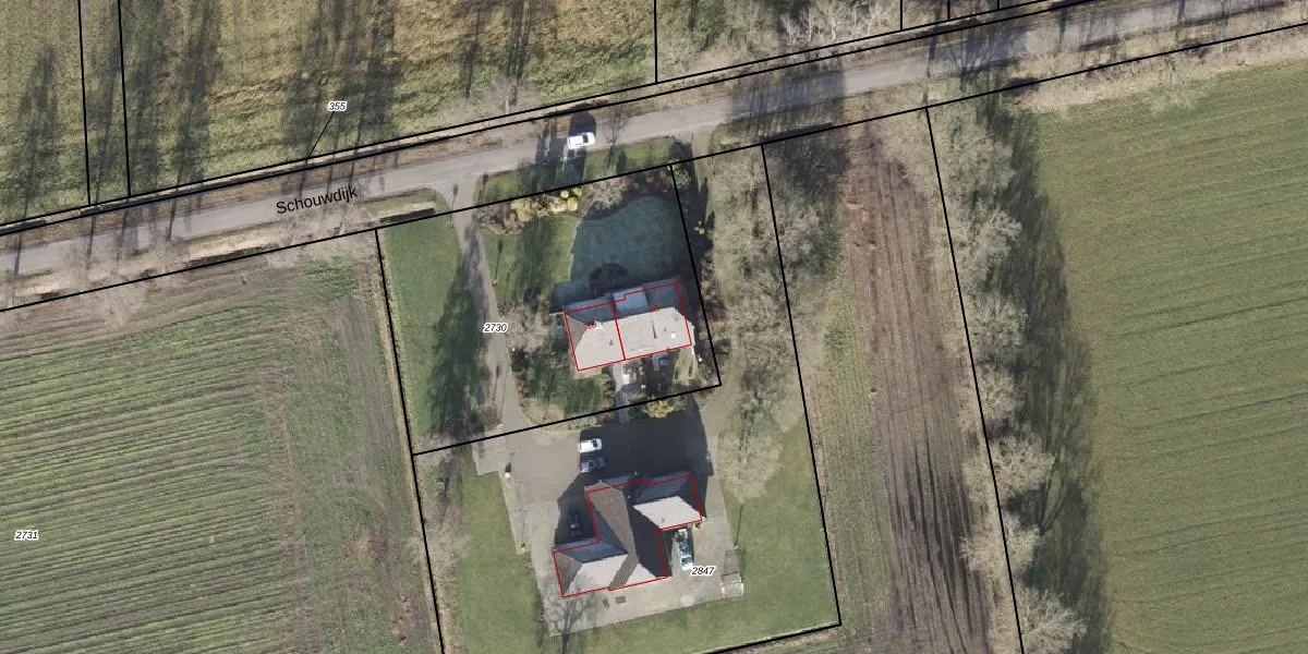 Het perceel waarop Schouwdijk 18 staat heeft een oppervlakte van 1630 m². Dit is een zeer groot perceel. De perceeloppervlakte wordt geregistreerd door het Kadaster. Gedetailleerde informatie over de maten van dit perceel kunt u vinden in het rapport Kadastrale kaart met maatvoering van Schouwdijk 18.
