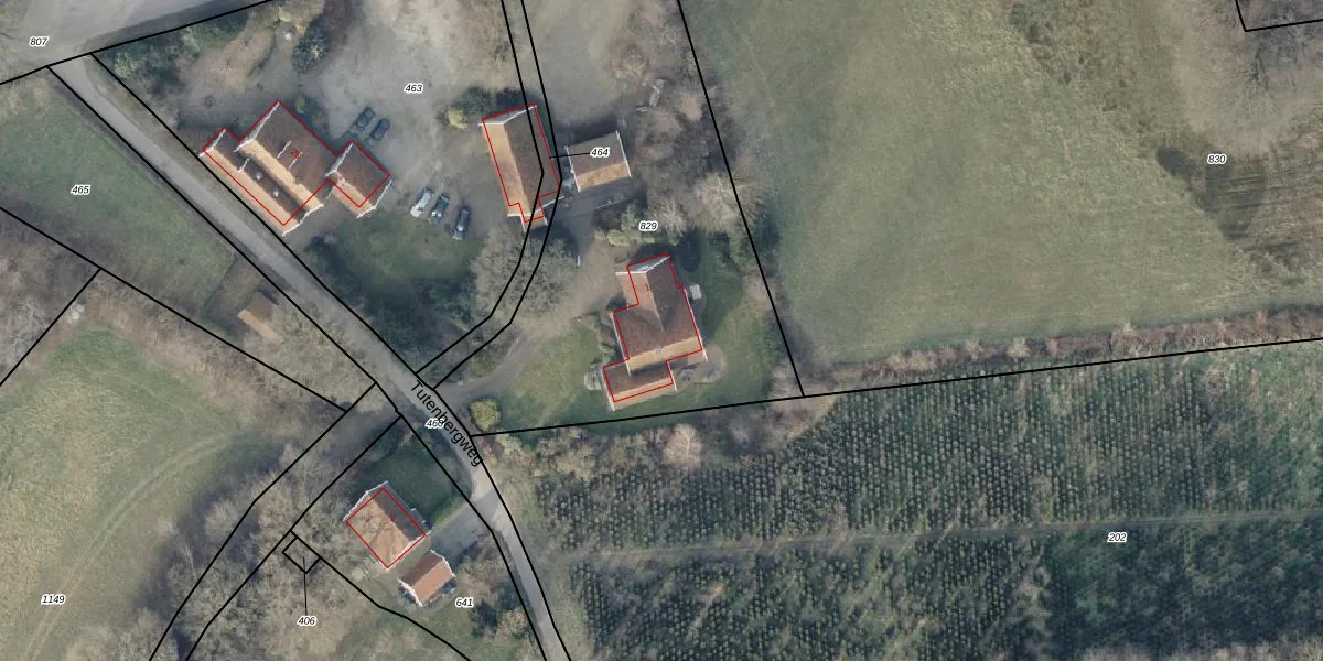 Het perceel waarop Tutenbergweg 1 staat heeft een oppervlakte van 2405 m². Dit is een zeer groot perceel. De perceeloppervlakte wordt geregistreerd door het Kadaster. Gedetailleerde informatie over de maten van dit perceel kunt u vinden in het rapport Kadastrale kaart met maatvoering van Tutenbergweg 1.