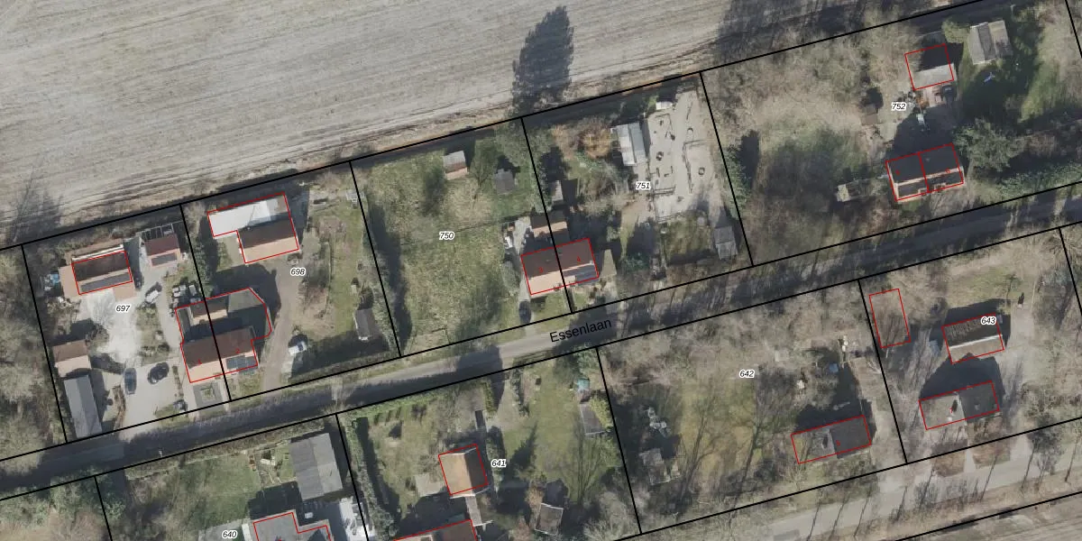Het perceel waarop Essenlaan 3 staat heeft een oppervlakte van 1225 m². Dit is een zeer groot perceel. De perceeloppervlakte wordt geregistreerd door het Kadaster. Gedetailleerde informatie over de maten van dit perceel kunt u vinden in het rapport Kadastrale kaart met maatvoering van Essenlaan 3.