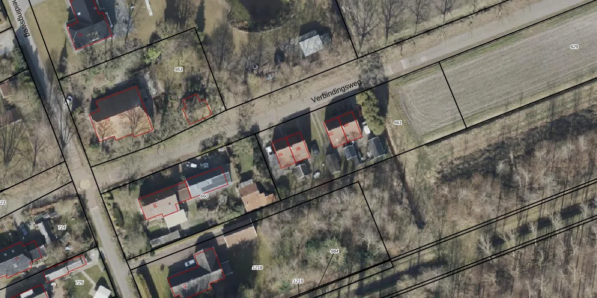Verbindingsweg 2-b is gelegen op kadastraal perceel BLW00O661. Deze kadastrale aanduiding is uniek en wordt gebruikt door het Kadaster om eigendomsrechten en andere zakelijke rechten vast te leggen. Het perceel maakt onderdeel uit van de kadastrale gemeente Bellingwolde.