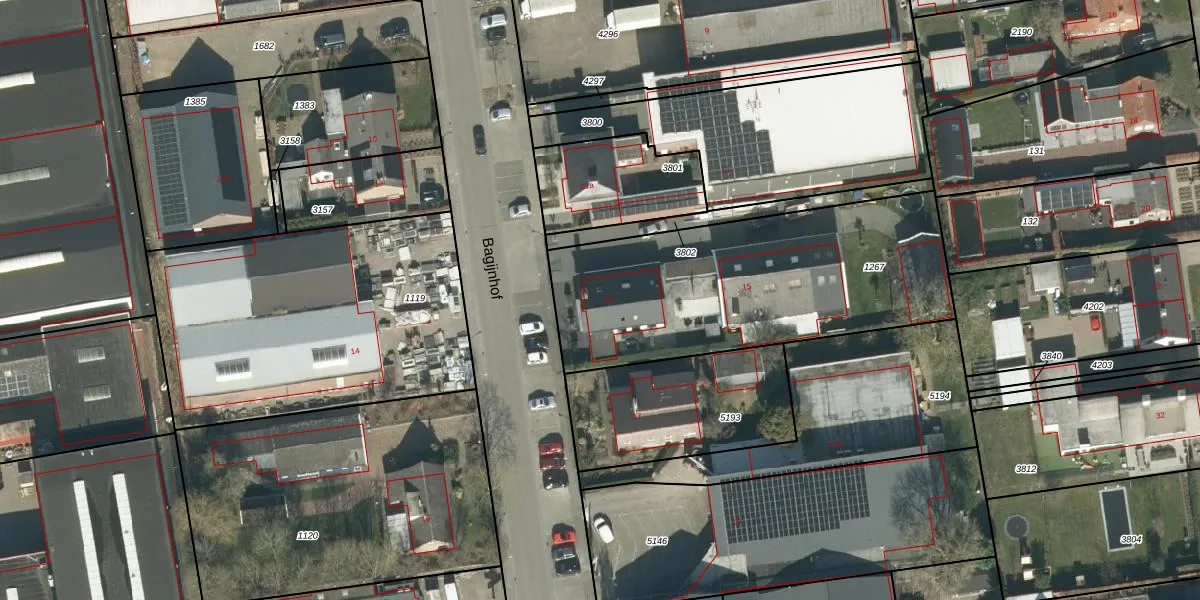 Het perceel waarop Bagijnhof 13 staat heeft een oppervlakte van 1377 m². Dit is een zeer groot perceel. De perceeloppervlakte wordt geregistreerd door het Kadaster. Gedetailleerde informatie over de maten van dit perceel kunt u vinden in het rapport Kadastrale kaart met maatvoering van Bagijnhof 13.