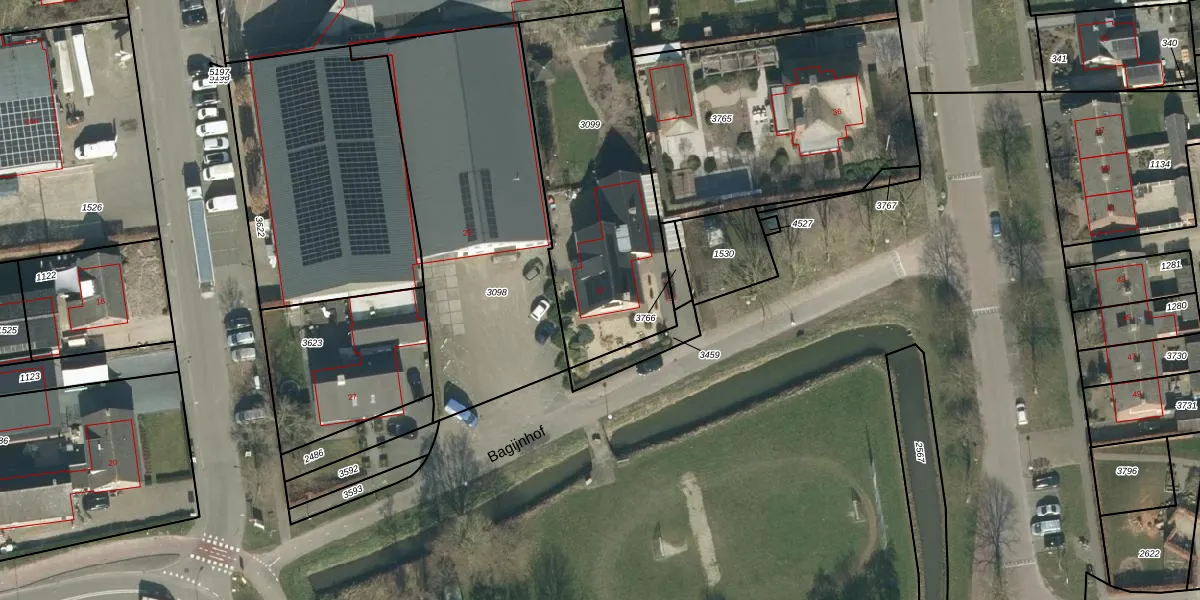 Het perceel waarop Bagijnhof 23 staat heeft een oppervlakte van 1045 m². Dit is een zeer groot perceel. De perceeloppervlakte wordt geregistreerd door het Kadaster. Gedetailleerde informatie over de maten van dit perceel kunt u vinden in het rapport Kadastrale kaart met maatvoering van Bagijnhof 23.