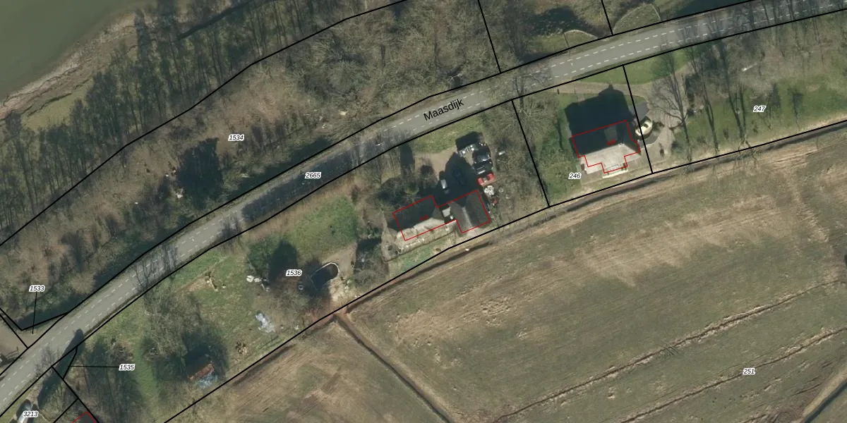 Het perceel waarop Maasdijk 411 staat heeft een oppervlakte van 3277 m². Dit is een zeer groot perceel. De perceeloppervlakte wordt geregistreerd door het Kadaster. Gedetailleerde informatie over de maten van dit perceel kunt u vinden in het rapport Kadastrale kaart met maatvoering van Maasdijk 411.