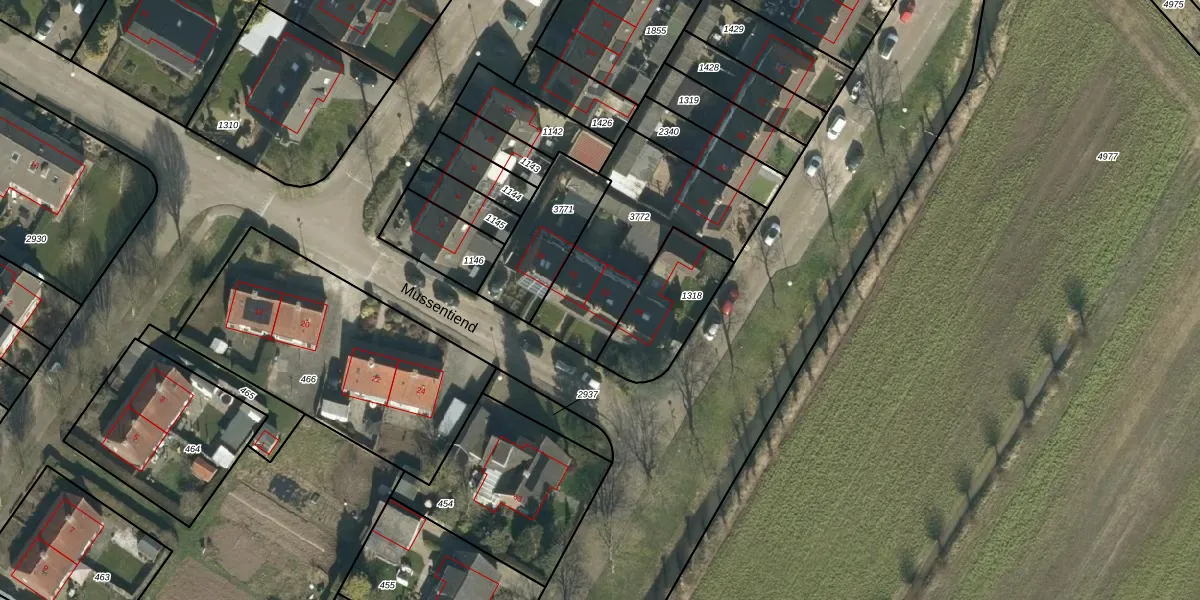 Mussentiend 23 is gelegen op kadastraal perceel ABG00E3772. Deze kadastrale aanduiding is uniek en wordt gebruikt door het Kadaster om eigendomsrechten en andere zakelijke rechten vast te leggen. Het perceel maakt onderdeel uit van de kadastrale gemeente Aalburg.