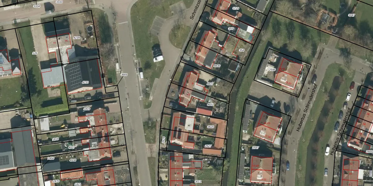 Het perceel waarop Schmitzstraat 11 staat heeft een oppervlakte van 383 m². Dit is een groot perceel. De perceeloppervlakte wordt geregistreerd door het Kadaster. Gedetailleerde informatie over de maten van dit perceel kunt u vinden in het rapport Kadastrale kaart met maatvoering van Schmitzstraat 11.