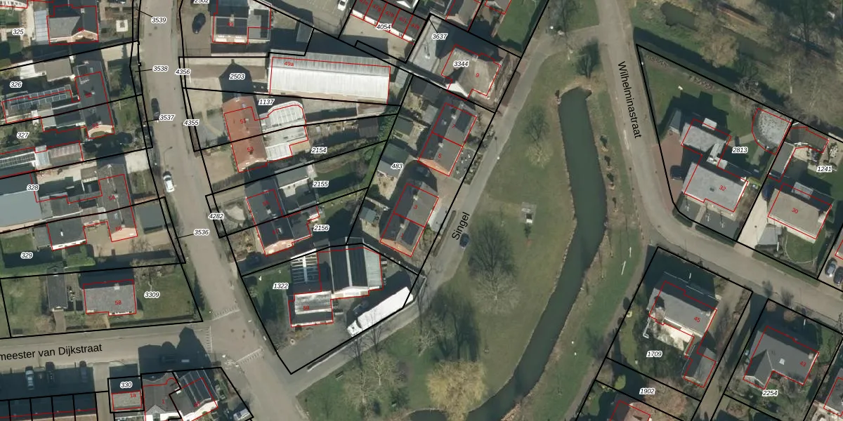 Het perceel waarop Singel 3 staat heeft een oppervlakte van 845 m². Dit is een groot perceel. De perceeloppervlakte wordt geregistreerd door het Kadaster. Gedetailleerde informatie over de maten van dit perceel kunt u vinden in het rapport Kadastrale kaart met maatvoering van Singel 3.