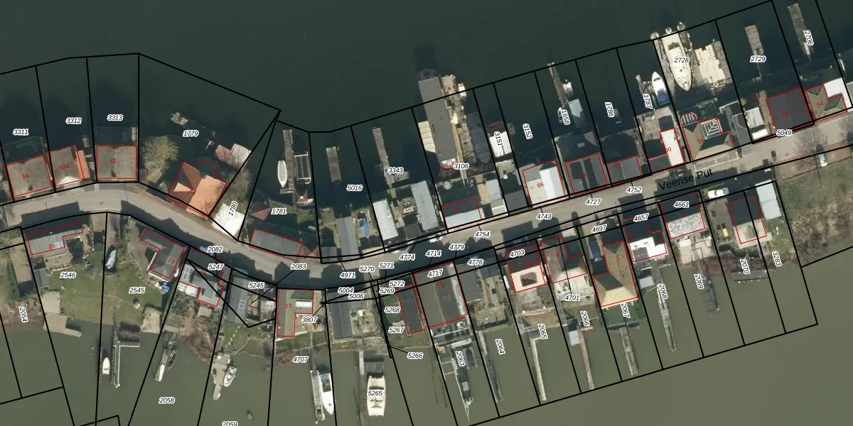 Gebruik de zoekbalk of klik op een perceel voor informatie over de adressen binnen dit perceel.