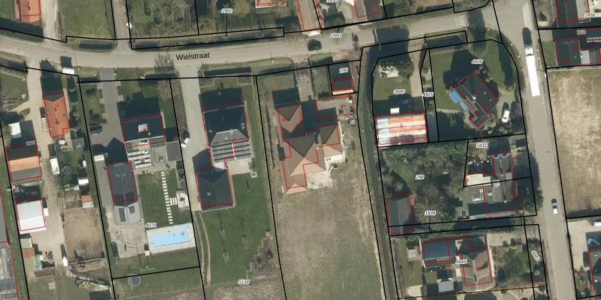 Het perceel waarop Wielstraat 5-a staat heeft een oppervlakte van 5780 m². Dit is een zeer groot perceel. De perceeloppervlakte wordt geregistreerd door het Kadaster. Gedetailleerde informatie over de maten van dit perceel kunt u vinden in het rapport Kadastrale kaart met maatvoering van Wielstraat 5-a.