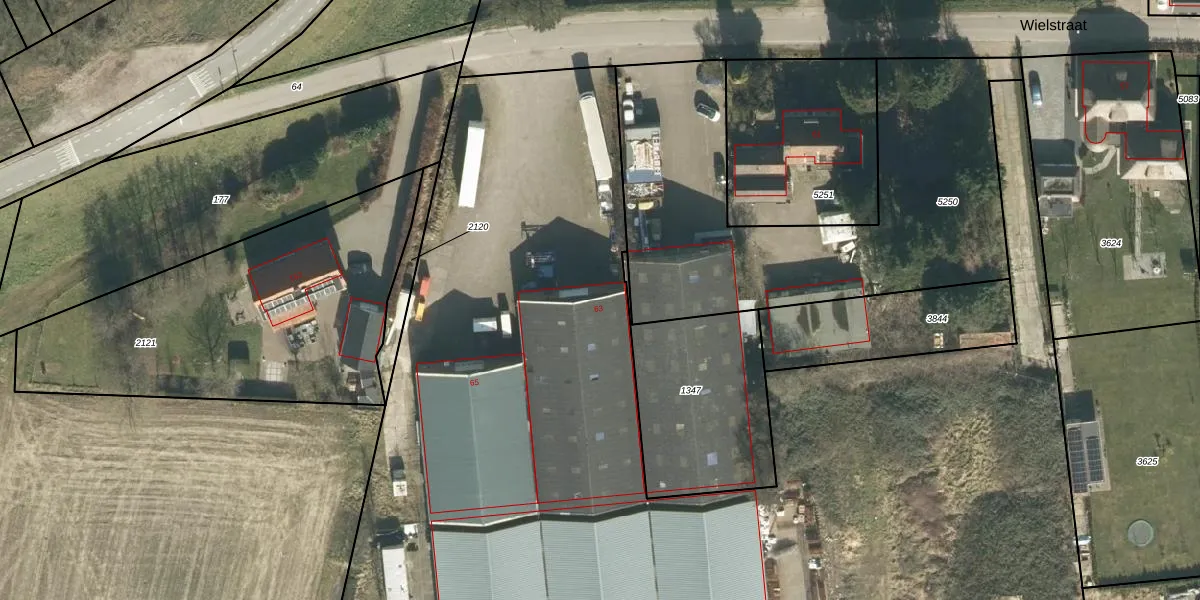 Wielstraat 63 is gelegen op kadastraal perceel ABG00E4349. Deze kadastrale aanduiding is uniek en wordt gebruikt door het Kadaster om eigendomsrechten en andere zakelijke rechten vast te leggen. Het perceel maakt onderdeel uit van de kadastrale gemeente Aalburg.