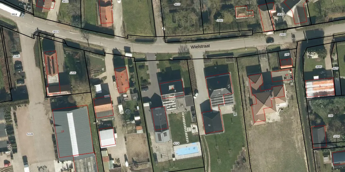 Het perceel waarop Wielstraat 9 staat heeft een oppervlakte van 1940 m². Dit is een zeer groot perceel. De perceeloppervlakte wordt geregistreerd door het Kadaster. Gedetailleerde informatie over de maten van dit perceel kunt u vinden in het rapport Kadastrale kaart met maatvoering van Wielstraat 9.