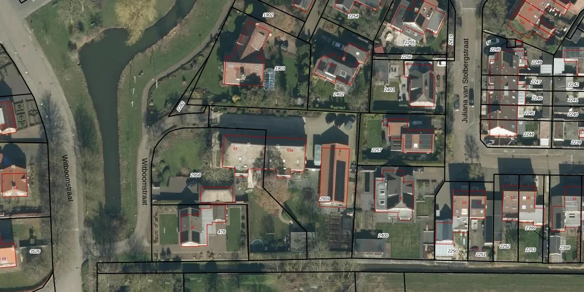 Witboomstraat 63-a is gelegen op kadastraal perceel ABG00E2959. Deze kadastrale aanduiding is uniek en wordt gebruikt door het Kadaster om eigendomsrechten en andere zakelijke rechten vast te leggen. Het perceel maakt onderdeel uit van de kadastrale gemeente Aalburg.