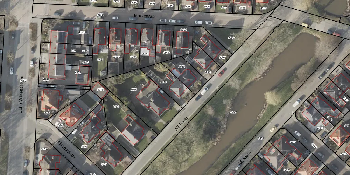 Gebruik de zoekbalk of klik op een perceel voor informatie over de adressen binnen dit perceel.