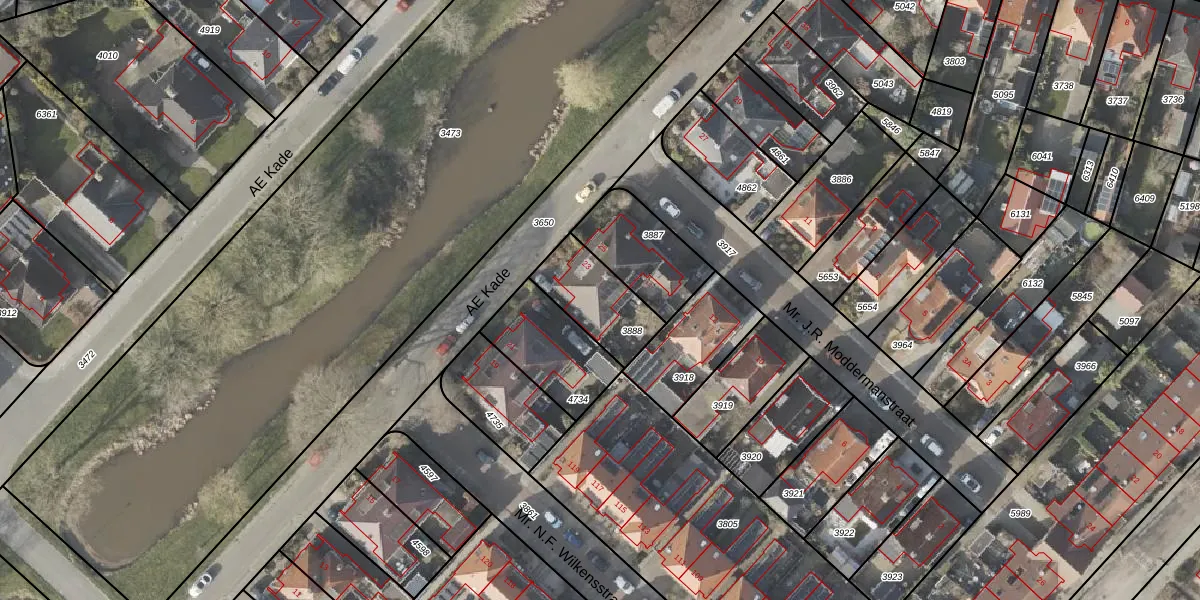 Het perceel waarop AE Kade 23 staat heeft een oppervlakte van 222 m². Dit is een middelgroot perceel. De perceeloppervlakte wordt geregistreerd door het Kadaster. Gedetailleerde informatie over de maten van dit perceel kunt u vinden in het rapport Kadastrale kaart met maatvoering van AE Kade 23.