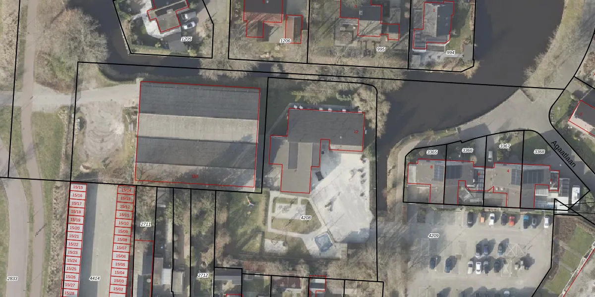 Agaatlaan 12 is gelegen op kadastraal perceel VDM00C4208. Deze kadastrale aanduiding is uniek en wordt gebruikt door het Kadaster om eigendomsrechten en andere zakelijke rechten vast te leggen. Het perceel maakt onderdeel uit van de kadastrale gemeente Veendam.