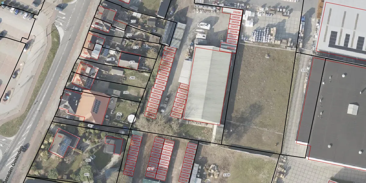 Beneden Oosterdiep 152-21 is gelegen op kadastraal perceel VDM00M1607. Deze kadastrale aanduiding is uniek en wordt gebruikt door het Kadaster om eigendomsrechten en andere zakelijke rechten vast te leggen. Het perceel maakt onderdeel uit van de kadastrale gemeente Veendam.