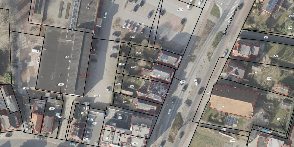 Beneden Oosterdiep 155 is gelegen op kadastraal perceel VDM00L527. Deze kadastrale aanduiding is uniek en wordt gebruikt door het Kadaster om eigendomsrechten en andere zakelijke rechten vast te leggen. Het perceel maakt onderdeel uit van de kadastrale gemeente Veendam.