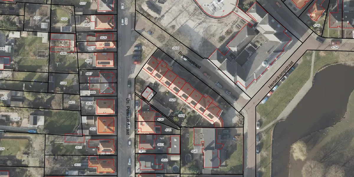 Boermastraat 10 is gelegen op kadastraal perceel VDM00D5529. Deze kadastrale aanduiding is uniek en wordt gebruikt door het Kadaster om eigendomsrechten en andere zakelijke rechten vast te leggen. Het perceel maakt onderdeel uit van de kadastrale gemeente Veendam.