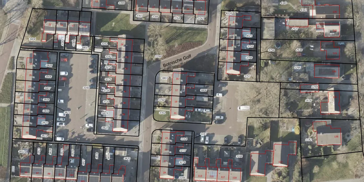 Het perceel waarop Botnische Golf 17 staat heeft een oppervlakte van 202 m². Dit is een middelgroot perceel. De perceeloppervlakte wordt geregistreerd door het Kadaster. Gedetailleerde informatie over de maten van dit perceel kunt u vinden in het rapport Kadastrale kaart met maatvoering van Botnische Golf 17.