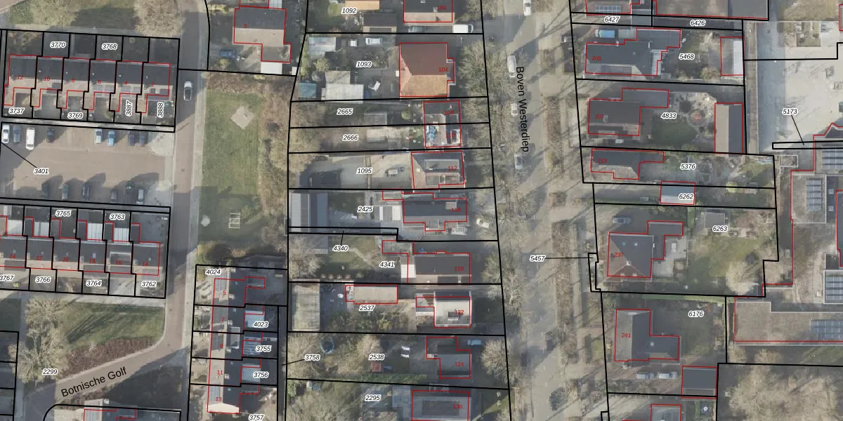 Het perceel waarop Boven Westerdiep 118 staat heeft een oppervlakte van 530 m². Dit is een groot perceel. De perceeloppervlakte wordt geregistreerd door het Kadaster. Gedetailleerde informatie over de maten van dit perceel kunt u vinden in het rapport Kadastrale kaart met maatvoering van Boven Westerdiep 118.