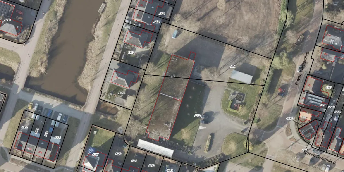 Het perceel waarop Boven Westerdiep 170-A staat heeft een oppervlakte van 3235 m². Dit is een zeer groot perceel. De perceeloppervlakte wordt geregistreerd door het Kadaster. Gedetailleerde informatie over de maten van dit perceel kunt u vinden in het rapport Kadastrale kaart met maatvoering van Boven Westerdiep 170-A.